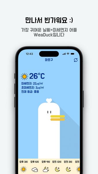 WeaDuck adalah aplikasi cuaca yang dirancang untuk iPhone, menawarkan informasi atmosfer yang komprehensif dan mudah diakses. Aplikasi ini menyediakan berbagai fitur, termasuk pemantauan kualitas udara dengan detail mengenai konsentrasi partikel halus dan ultrahalus. Selain itu, WeaDuck memberikan ramalan cuaca dan suhu hingga tiga hari ke depan, membantu pengguna merencanakan aktivitas mereka dengan lebih baik.